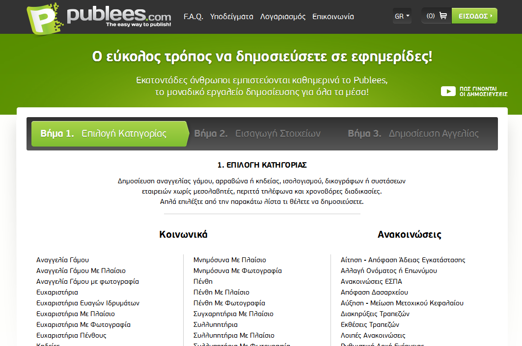 Το publees.com είναι το μοναδικό site δημοσιεύσεων σε εφημερίδες!